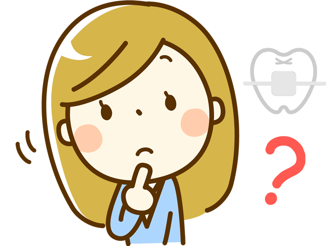 ご注意:同じ、めだたない金具でも値段の安いプラスティック製のものがありますが、これは歯が動きにくいため、当院では一切使用しておりません。